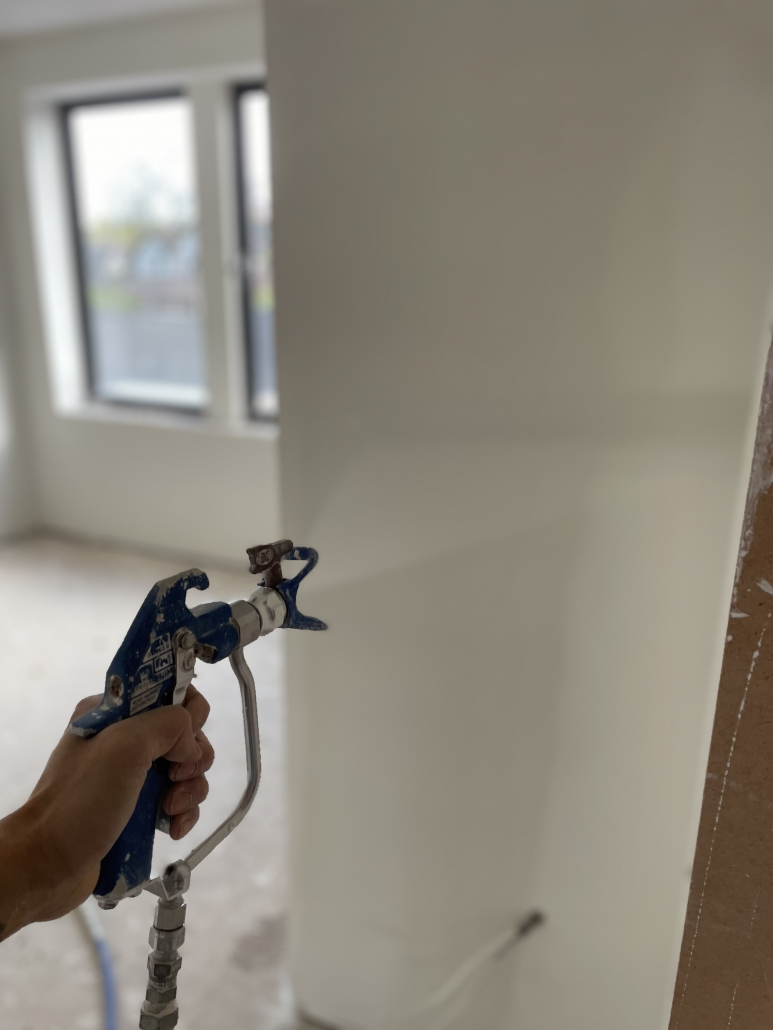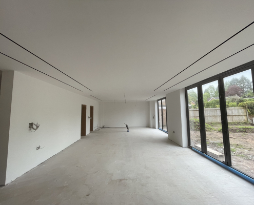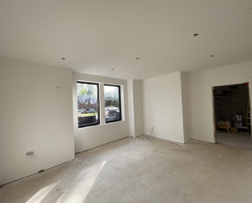 For the finishing of internal walls and ceilings, an alternative option would be Airless spray plaster. Airless spray plaster has numerous benefits compared to traditional gypsum finishes, the main benefit being the ‘level 5’ quality of finish. Other benefits include a more flexible product, premixed therefore cleaner sites and less airborne dust, increased efficiency and once the airless spray plaster system has been completed it can then be decorated 24 hours later.