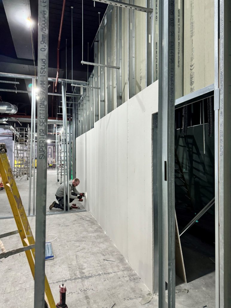 Metal Stud, MF ceilings, Drylining, Tape and Joint